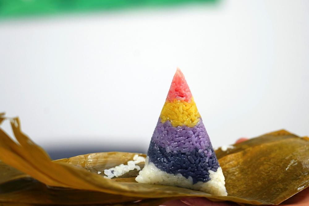 在贵州台江县排羊乡的一处粽子生产车间里拍摄的五彩粽子。邰春 摄