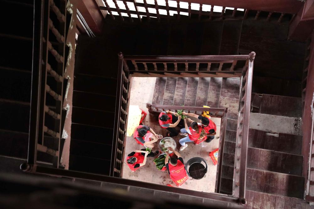 贵州铜仁玉屏侗族自治县举行“粽叶飘香迎端午,邻里和谐一家亲”活动,志愿者在朱家场镇茅坡村帮村民包粽子。胡攀学 摄