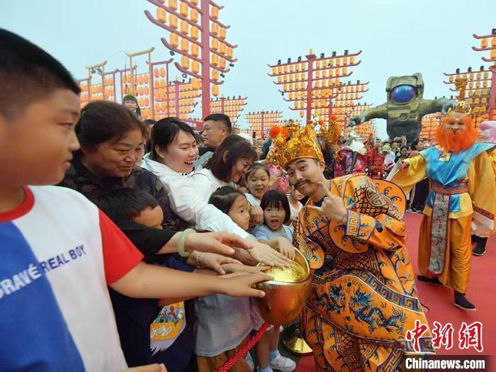 “财神”与现场市民互动。刘栋摄