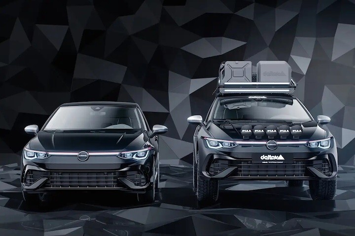 Delta 4x4 高尔夫 R 拥有存在感极强、形似 WRC 拉力赛车的视觉风格。加高 80mm 的车身搭配 18 吋全地形轮胎,使它拥有良好的越野机能,车身前后叶子板则加上外扩宽体,车顶加上配有灯具的置物架,提供装载备胎、户外装备等物品的载物机能,引擎盖上另安装 5 具 Piaa 雾灯,提升恶劣天气行驶时的照明能力。