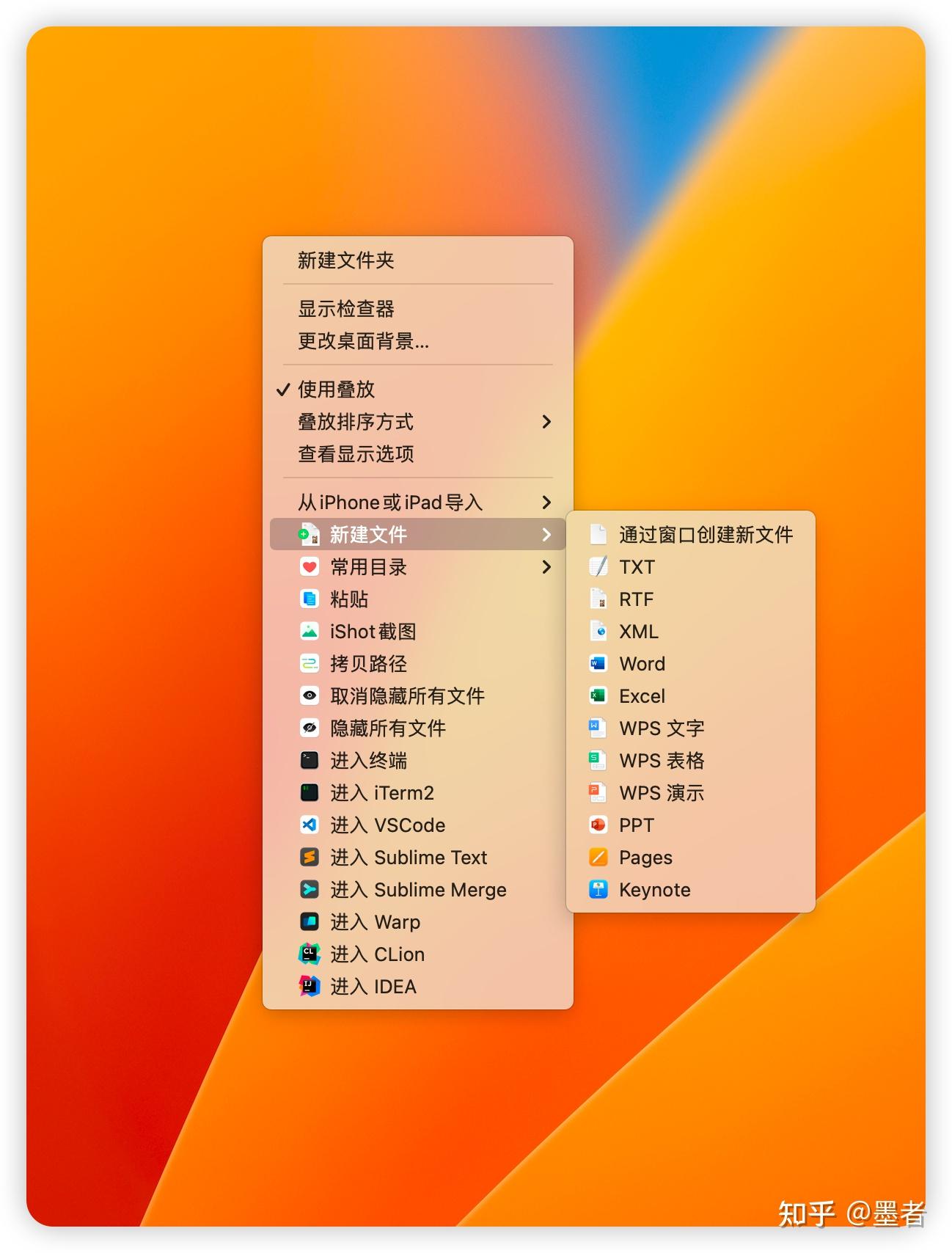 安装「超级右键」后,在桌面或访达空白处,单击鼠标右键或双指点击触控板,即可新建 TXT、Word、Excel、PPT 、PSD、Ai 等各种类型的文件;