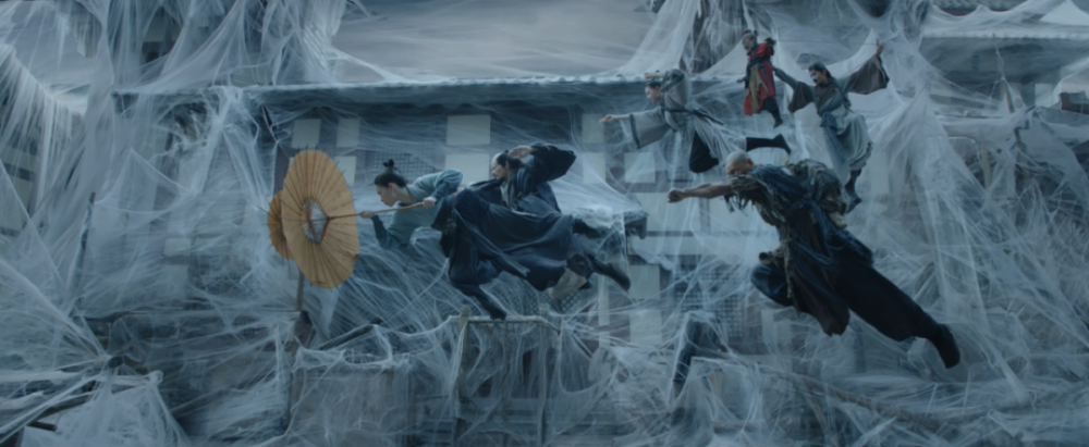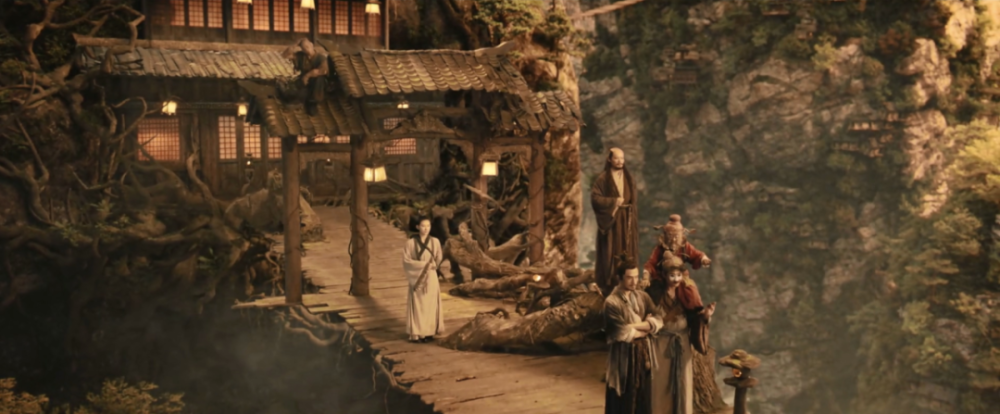 比如《奇门遁甲2》基本称得上2020年《奇门遁甲》的全面升级版,尤其是视觉美术层面的摄影、构图、色彩和场景搭建,基本可以说超越了过去一部分本土魔幻题材院线电影的水准,审美风格统一,色调构图向大电影看齐,作为主餐的特效堆砌也称得上份大量足。