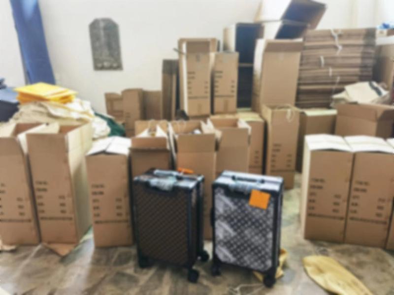 当天上午,民警首先在花都区某仓库内捣毁了一个涉嫌生产假冒知名品牌箱包的窝点,抓获吴某(男,47岁)等3名犯罪嫌疑人,查获假冒知名品牌箱包及配件300余件,涉案金额达200万元。