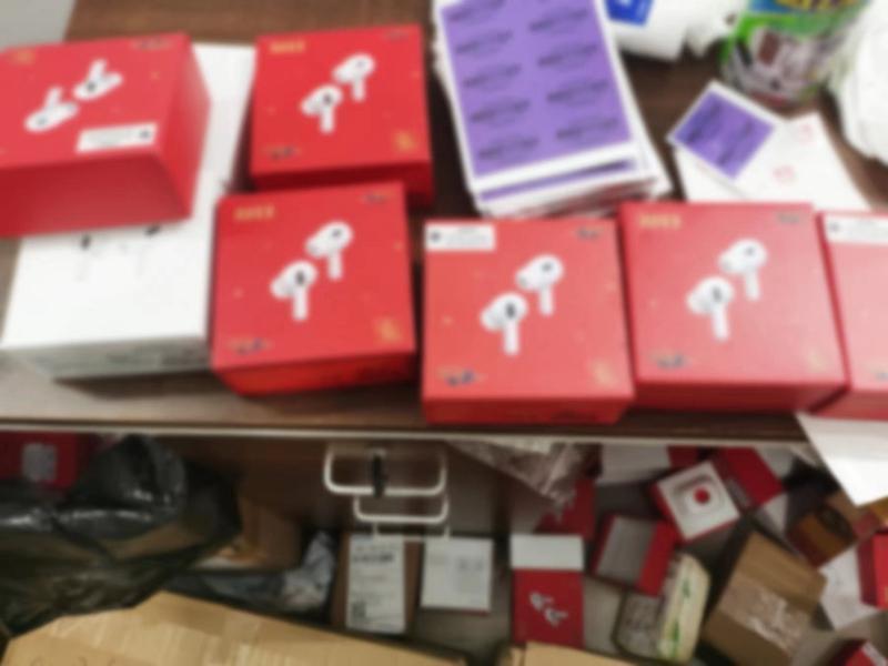 接报后,民警迅速展开调查,当天下午捣毁该窝点,现场抓获以范某(男,22岁)为首的团伙成员6名,打掉该作案团伙,查获假冒知名品牌蓝牙耳机4500多对,涉案金额达900万元。