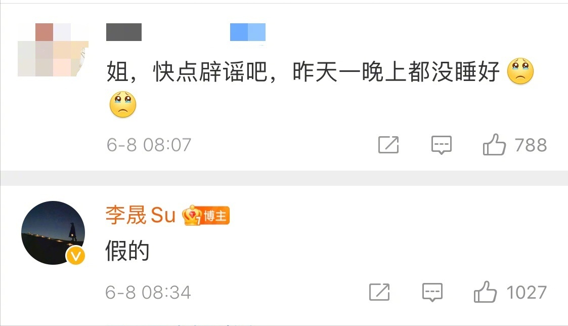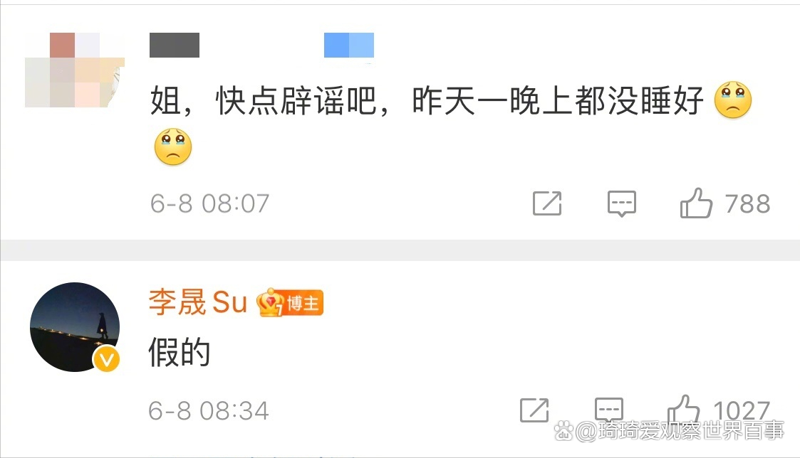而且,通过这条简单独特的动态,大家也感受到了当事人对于造谣内容的不屑以及无语。很多网友还在他这条动态的评论区留言,催促对方赶紧去把造谣者告了。而另一边,这个谣言也让那些关心李晟的粉丝非常担心,有粉丝直接在李晟的评论区留言,希望对方能够快点辟谣。
