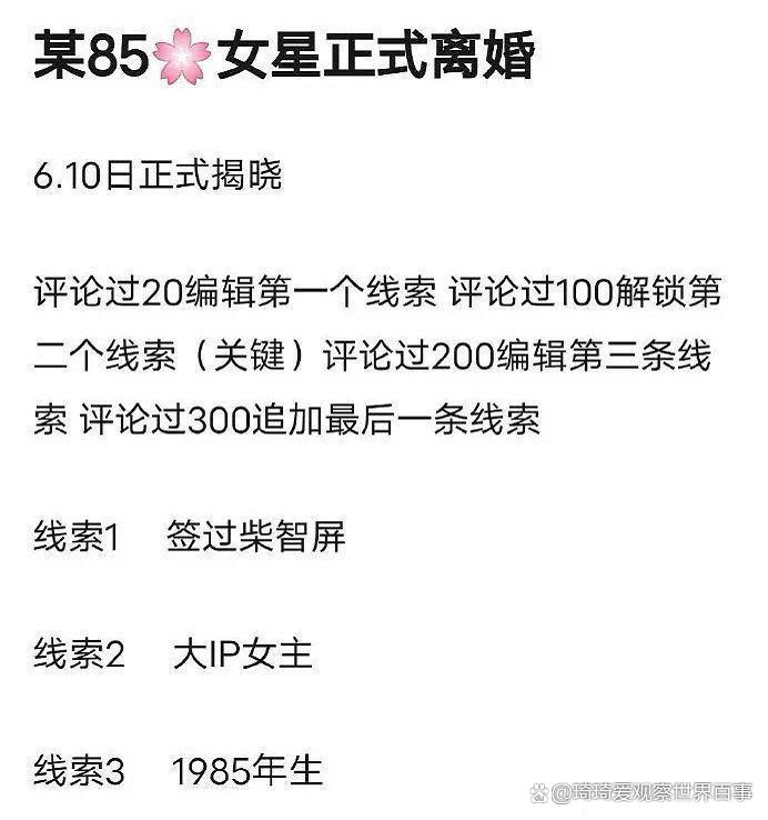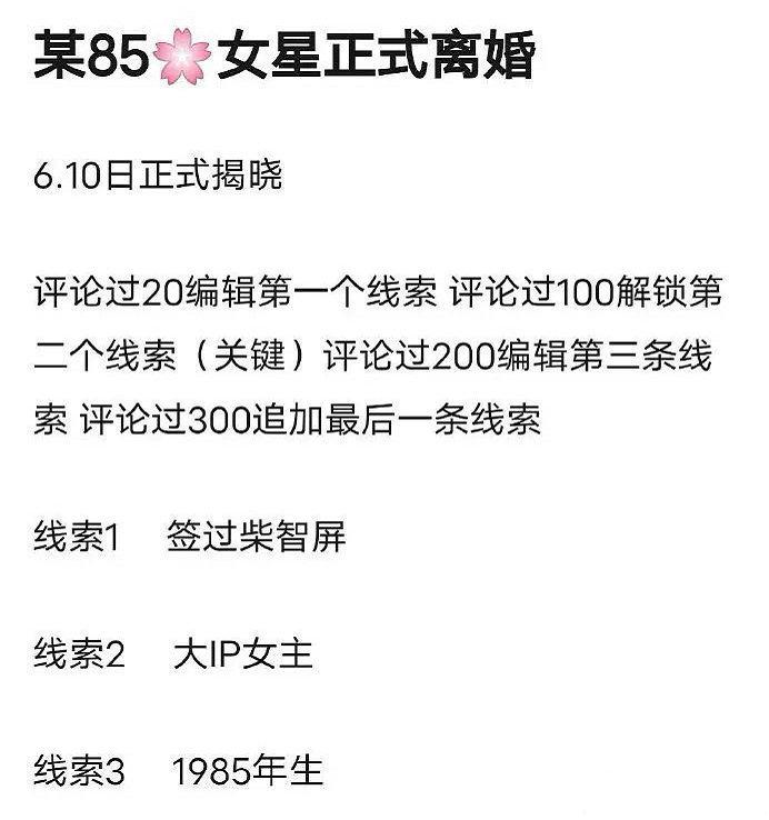 6月7日下午,有媒体在社交平台上爆了一个大瓜,称某85花女星正式离婚了,没过多久,同一个账号再次爆料,这位85花女星之前签过柴智屏,是大IP女主,1985年出生。原本还在观望的网友看到新爆的这条消息以后,立马就知道了此次离婚大瓜的当事人就是李晟。为何这样说呢?