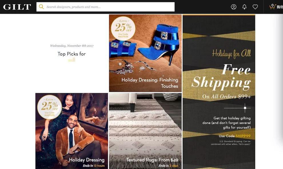 GILT也有一套自己的会员等级机制,购物每消费1美元即获取5积分,通过手机app邀请朋友加入会员可获25积分。这些积分可以置换现金折扣、兑换礼品、或换取合作店铺的优惠,不同等级的会员也能够享受生日礼、大促预览、运费优惠等福利。
