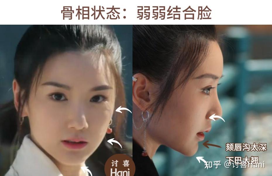 毛晓彤是弱颧骨+弱上颌+弱下颌的弱弱结合脸,秀气有余,气势不足,下巴还是很娇翘、颏唇沟很深的娇滴滴小下巴。