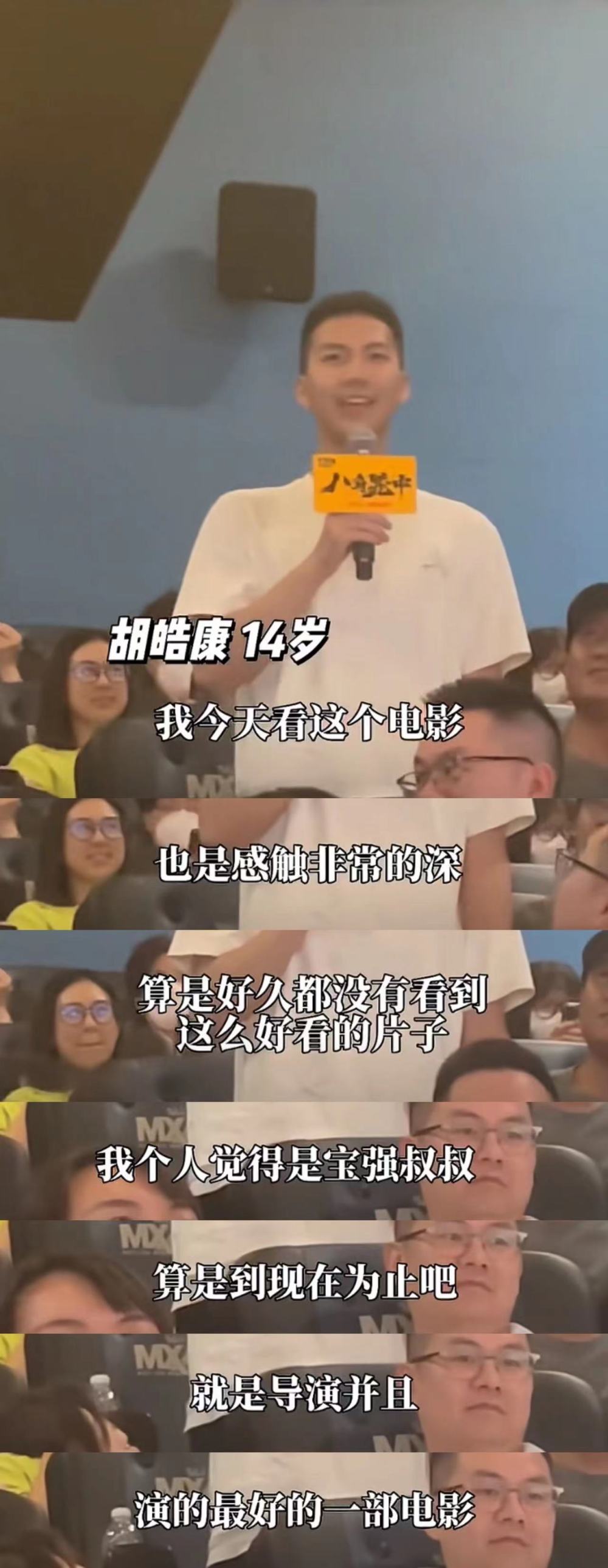 王宝强还邀请了胡军和胡皓康父子观影,他们都一起录制过《爸爸去哪儿》,又高又壮的胡皓康像个大男孩,他很会说认为这部电影是自己很久没有看到的好电影,还夸奖王宝强的这部电影是他导演和演得最好的一部电影。14岁的胡皓康鉴赏能力还是很强,《八角笼中》应该真的很不错。