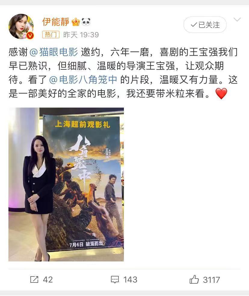 伊能静是被媒体邀请观影,她认为喜剧的王宝强大家已经熟悉,但细腻、温暖的导演王宝强让观众期待。电影温暖有力量,是一部美好的全家电影,还要带女儿米拉去观看。
