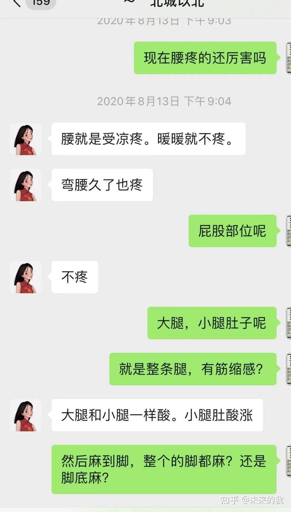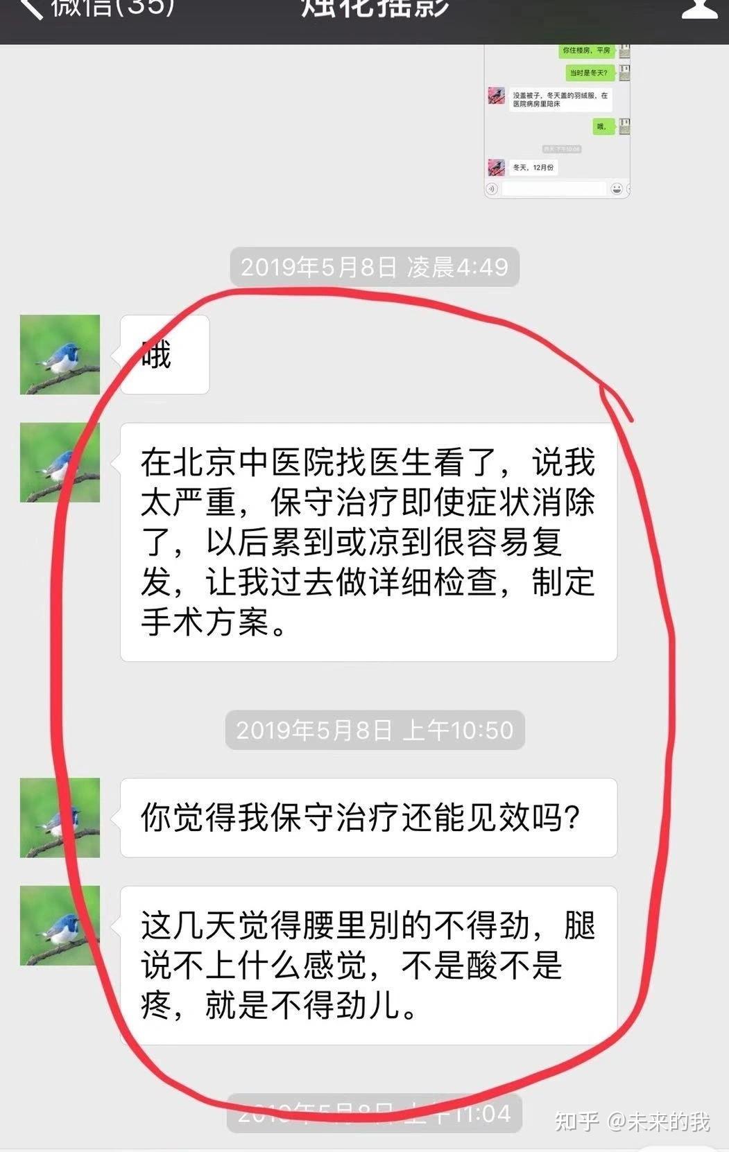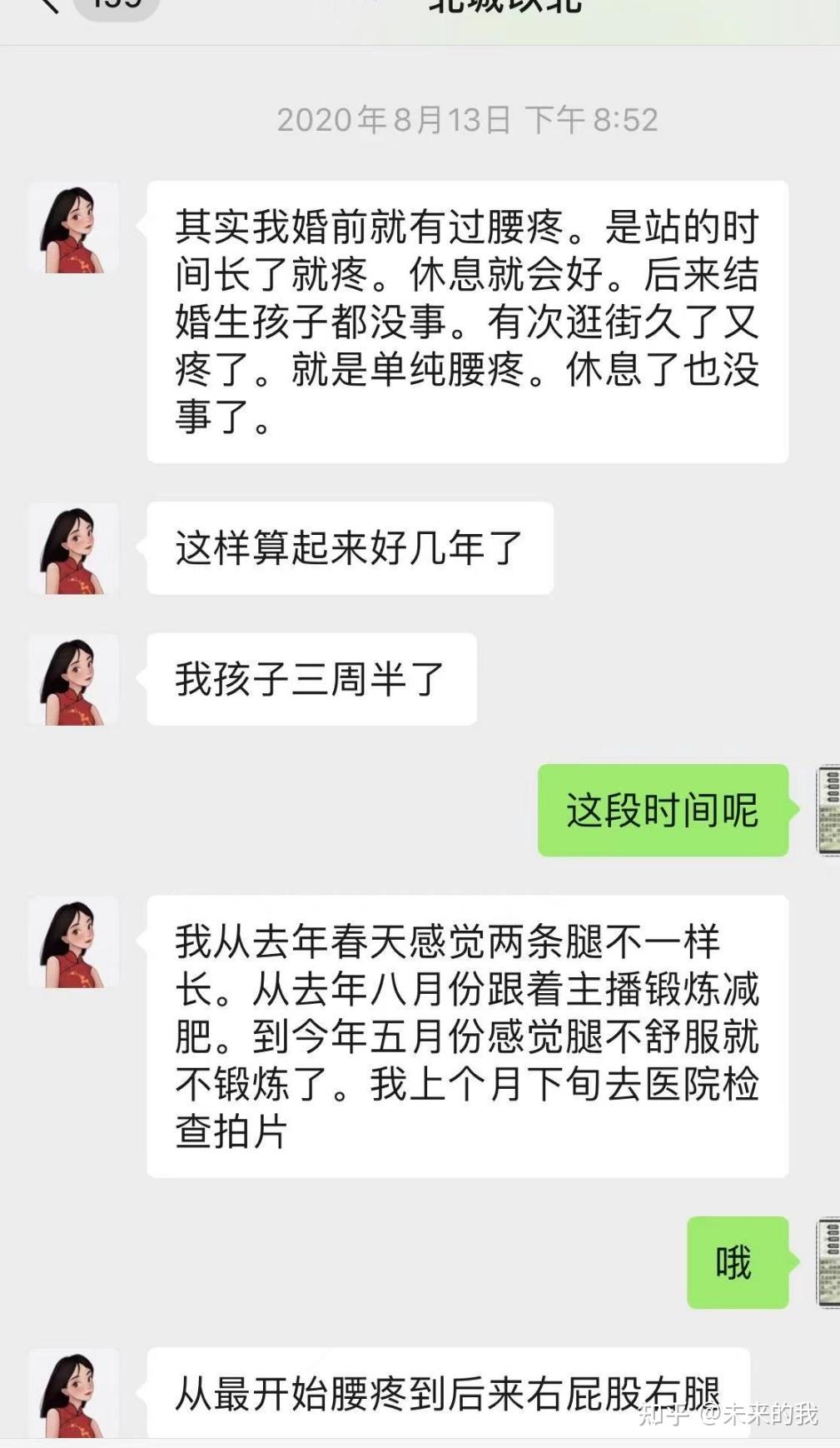 19年4月底,这个女老师联系到我,说了一下她的情况,她是东北地区的,以前就是腰间盘脱出,工作的学校离家太远,需要坐公交两个小时才能到家,实在不方便每天回,她就一周才回家一次,平时住在学校,学校宿舍的条件毕竟不如家里,冬天在学校里住,半夜被冻醒了好几次,从那以后,她的症状就越来越严重,半年多的时间,把当地能打听到的,能治这个病的地方全都去过了,钱也没少花,但症状反而越来越严重,实在没办法了,,19年4月底,她去的北京一家大医院,找的专家,专家会诊后,让她做手术,她刚40岁,不敢做,焦虑的整晚的睡不着觉,