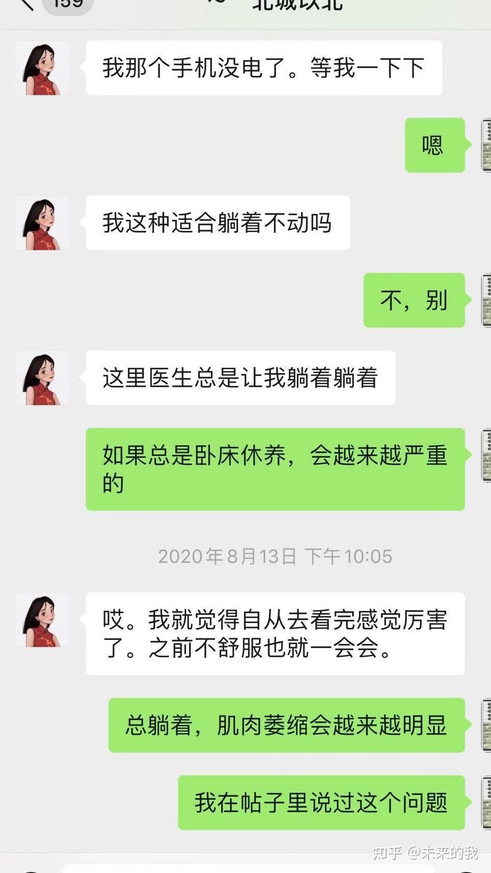 今年春天,4月下旬,她咨询我她老妈颈椎病的事儿,然后又问了的情况,到现在她都整三年半了,恢复的挺好的,在学校带着孩子做游戏,踩气球,兔蹦等等,也都啥事儿没有的…