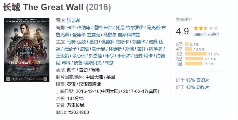 2016年,耗资10亿成本的中西合作电影《长城》就是典型。
