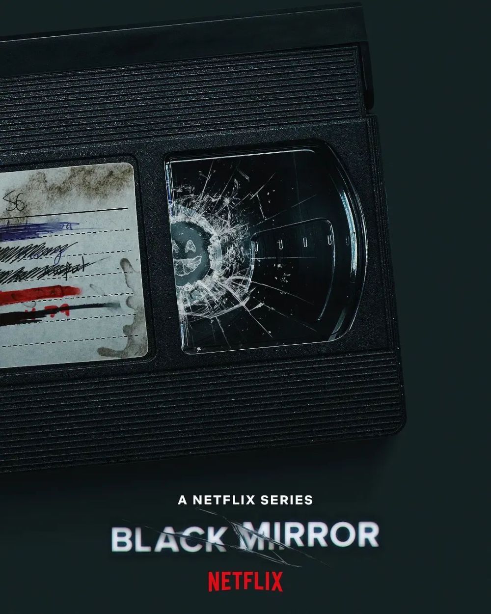 第六季《黑镜》的海报上,拼成破碎面孔的碎片,不再是前四季海报中数码产品的黑色玻璃屏幕,也不是第五季蓝色天空的屏保,而是录像带上一块透明的塑料盖板。