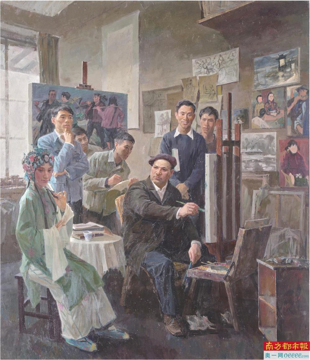 据杨智东介绍,埃乌琴·博巴1960年左右来到中国美术学院访学,其人及其艺术创作并不广为人知。《罗训班的课堂》表现的是博巴作为艺术家来到中国,在思想上、在技法上,与中国艺术产生的碰撞。这是一幅具有历史感的油画,在一个学艺氛围浓重的场景里,艺术家通过精湛的写实技巧,树立了博巴及美院师生的生动形象。对艺术的执着与人性的光辉充盈着整个画面,而一丝不苟、不厌其烦的笔触堆叠,体现出绘画作为一种生活实践的朴实与厚重。