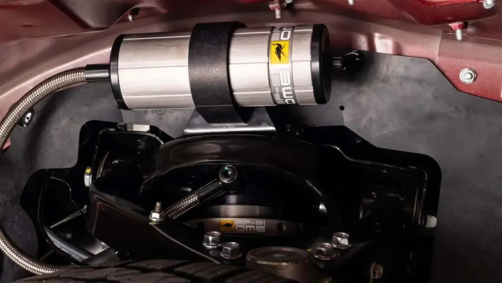 车尾部分,两个版本最具辨识度的就是都加装了龙门架。不同的是,Thunder Pro版本的龙门架尺寸十分夸张,整体高度高出车顶,采用粗壮的圆管造型与车尾连接,并配有高位刹车灯。SP Pro版本相比之下则更加低调,只是加装了与车身造型相贴合的小尺寸龙门架。其他细节方面,两个版本都采用黑化的尾灯轮廓造型与后包围覆盖件。