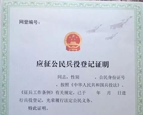 大家注意,左上角为网登编号,填写下图“兵役登记证明”时使用。