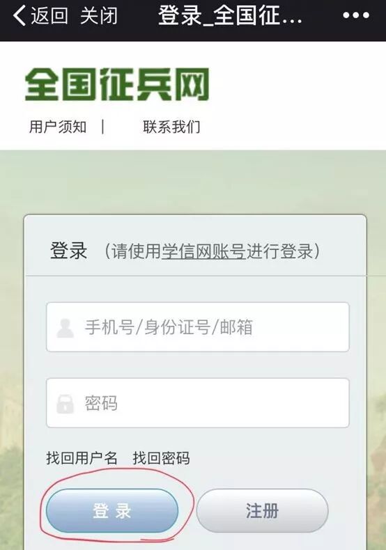 在填写完成所有需要的信息之后,点击左侧“仅兵役登记”。