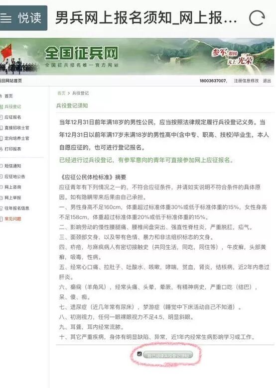 如果只进行兵役登记,不需关注须知内容,直接点“我已阅读兵役登记须知”。