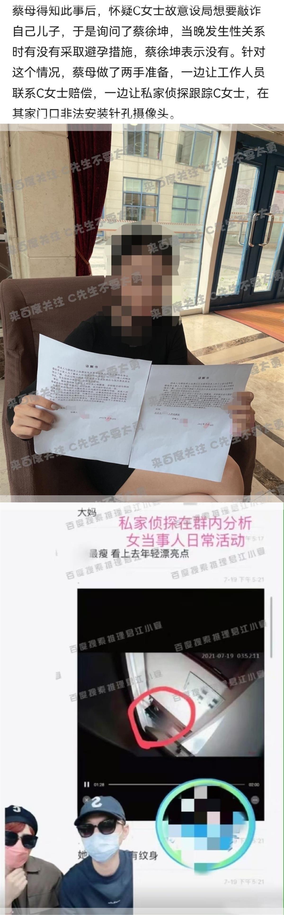 另据爆料称,C女士曾在6月26日前去警局报案,蔡徐坤以及他母亲、参与此事的人员均被传唤到案,接受调查。后来据传私家侦探被逮捕,C女士出示谅解书与蔡徐坤一家和解,私家侦探也被释放。到底有没有这回事?两则声明仍只字未提。