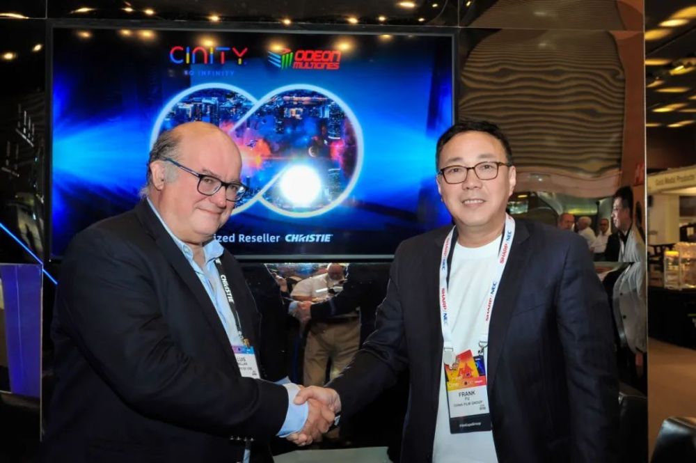 欧洲时间6月21日,中影CINITY于欧洲电影博览会(CineEurope)期间,与西班牙Odeon院线签署了6套CINITY影院系统建设协议。全国政协委员、中影董事长、CINITY创始人傅若清出席博览会并签署了协议。