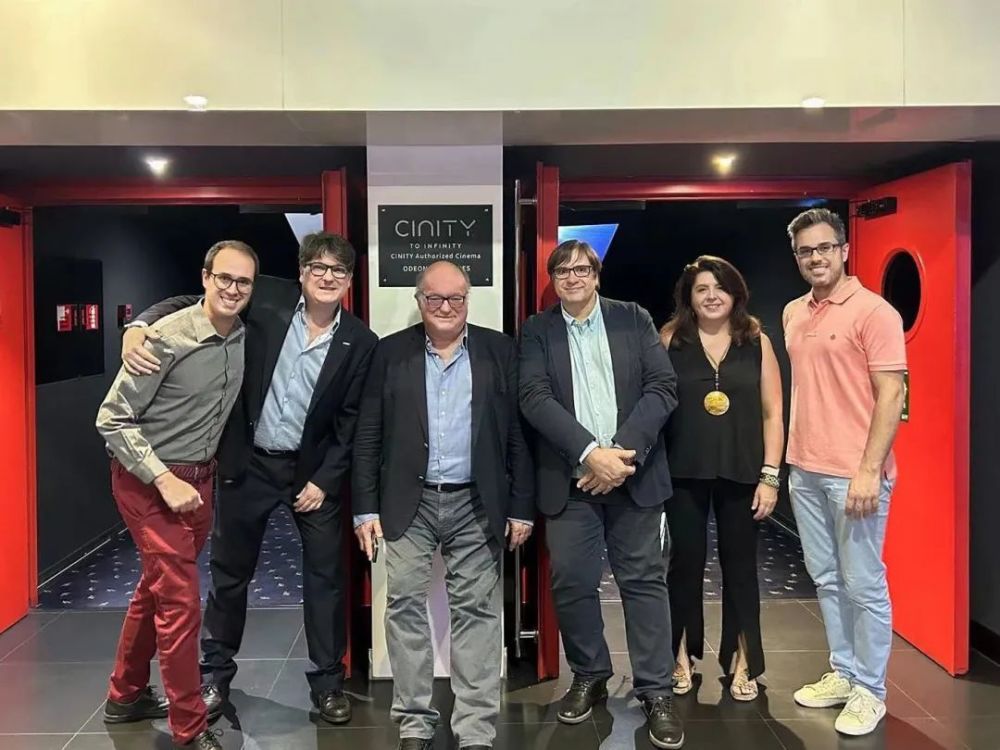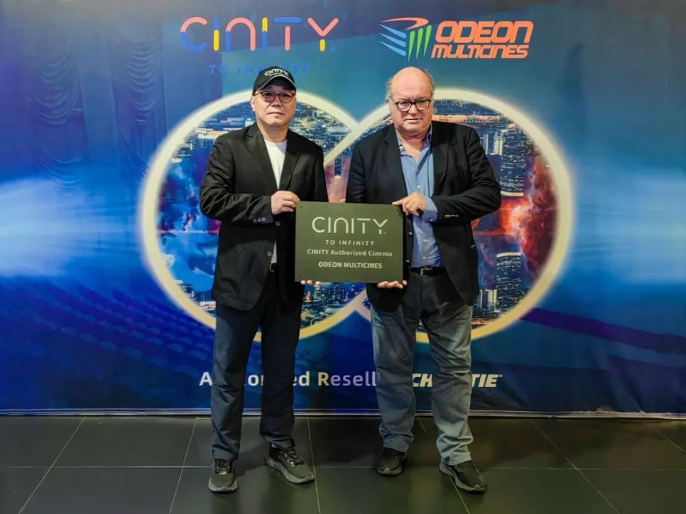 展会期间,中影代表团前往西班牙马德里出席了Odeon院线开业的第一个CINITY影厅的授牌仪式。仪式上,傅若清向西班牙Odeon院线CEO Luis C Millán授予了CINITY影厅授权牌,双方就院线运营与未来发展进行了深度交流。傅若清表示:“感谢欧洲观众和影院对中影CINITY的信任,非常高兴看到中国高新技术电影放映系统在欧洲落户运营。这意味着越来越多的海外观众通过CINITY享受到高帧率、高亮度等高新技术呈现的全新视听,也感知到导演詹姆斯·卡梅隆所说的CINITY正在建立一个电影‘新的黄金标准’。”Luis C Millán说:“在去年欧洲电影博览会上领略了CINITY影院系统的至臻效果后,我们迫不及待地想将其引进到西班牙,让西班牙观众感受到CINITY带来的美妙观影体验。”,“CINITY影院系统为观众提供了无与伦比的观影享受,高清的细节呈现和非同寻常的色彩还原,使看电影变得与众不同,让观众身临其境、沉浸式走进光影故事,CINITY将电影提升到了一个全新水平。”