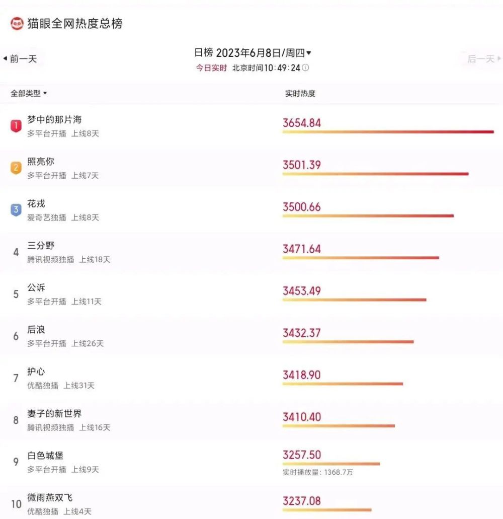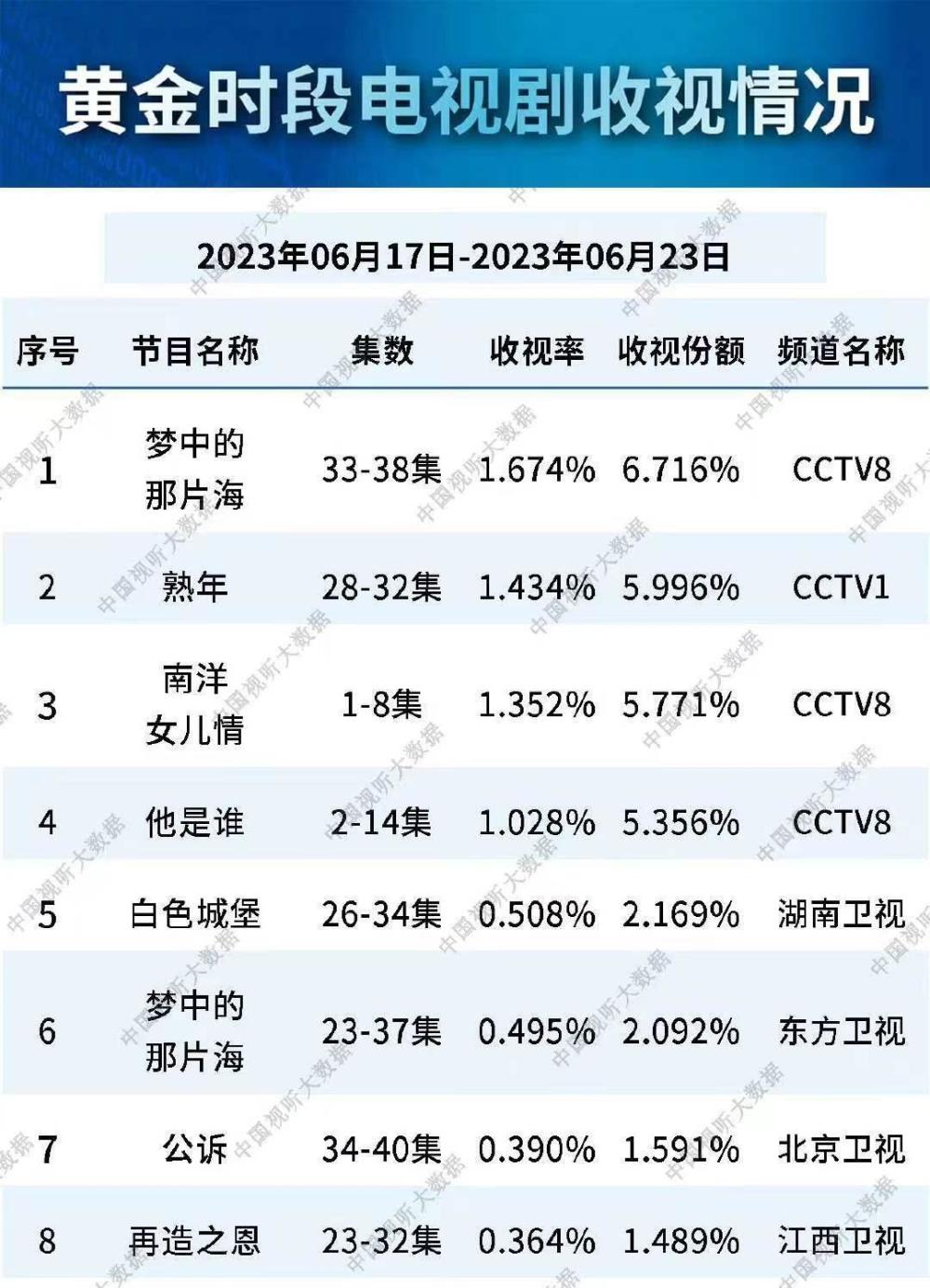 在日前总局公布的6月17日到6月23日黄金时段收视榜率排行榜中,跻身收视前八的电视剧,个个实力不俗,排在第一的这部剧,则更有可能成为2023年剧王级别作品。