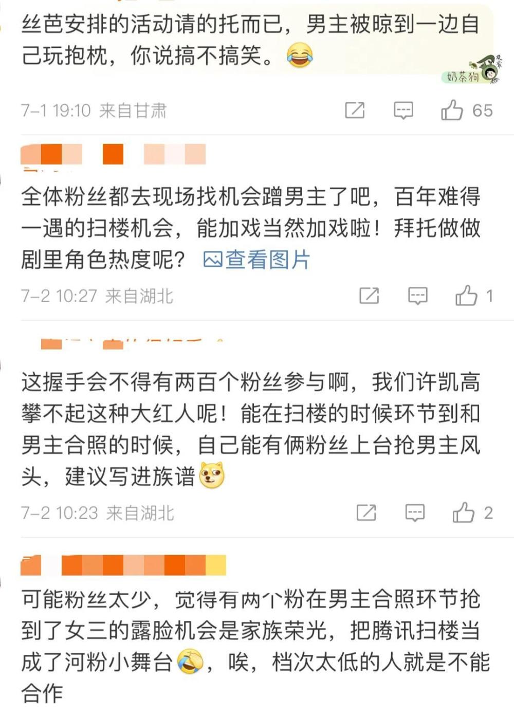 三点成为粉丝的控诉,更是质问剧方为何不通知男主粉丝有扫楼活动,导致许凯遇到如此尴尬的事情。