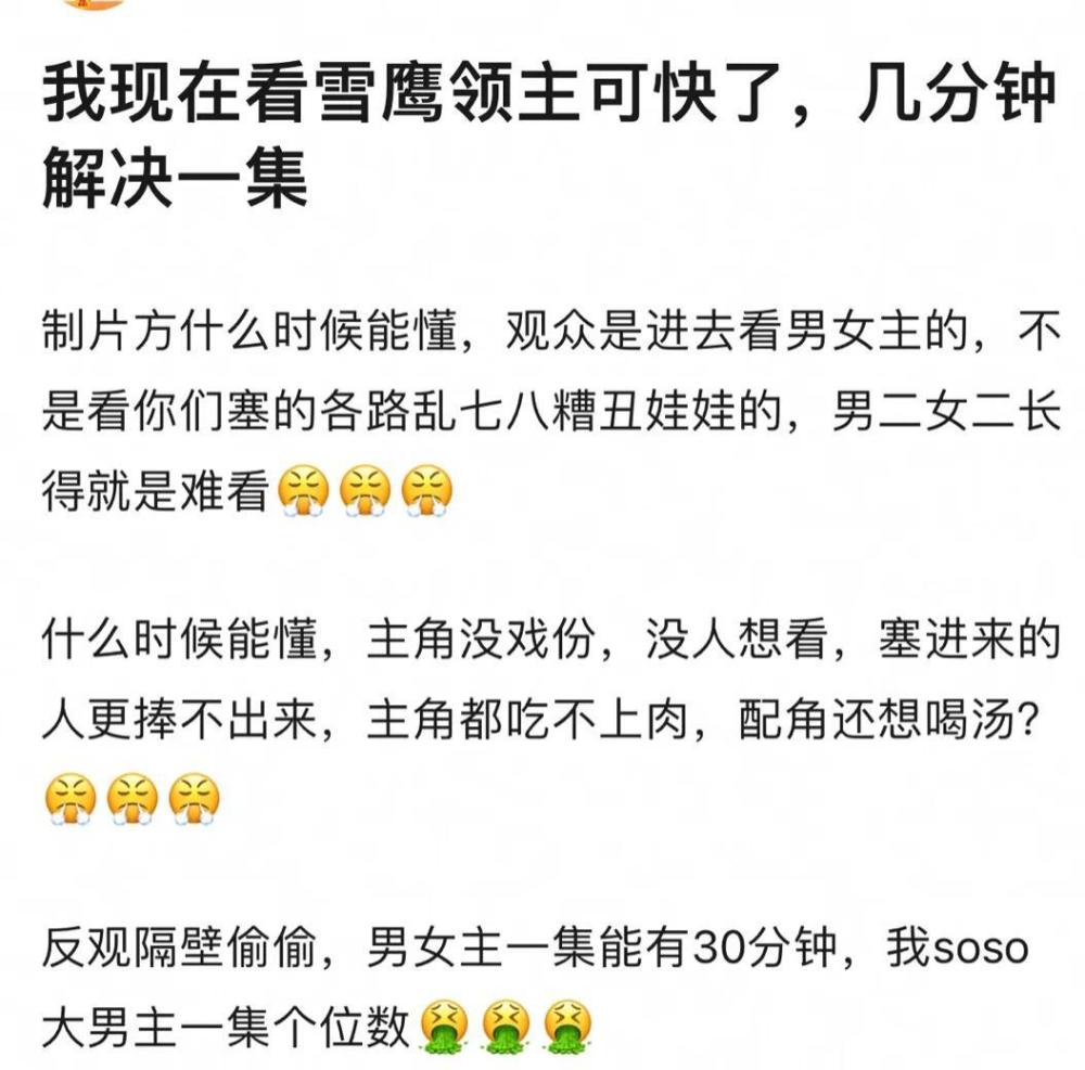 原本以为《雪鹰领主》成“三无产品”已经够离谱了。结果,在开播过后,离谱的事情更是接踵而至。