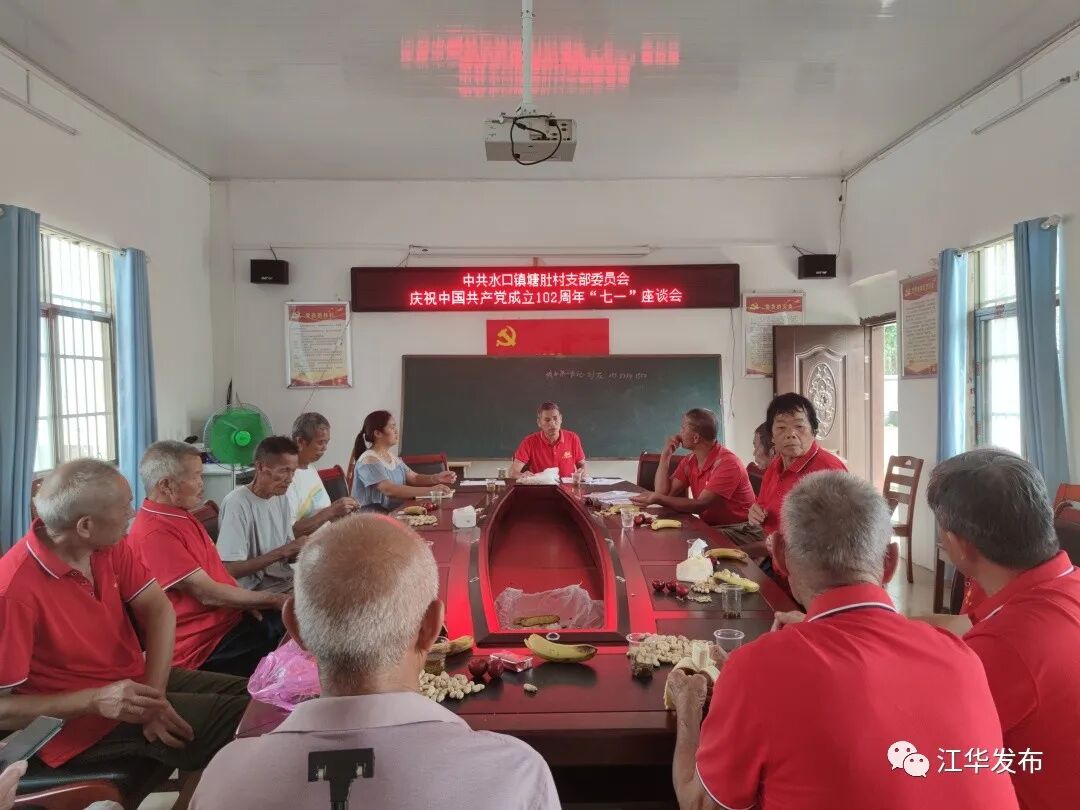7月1日,水口镇塘肚村党支部在会议室召开了庆祝中国共产党成立102周年“七一”座谈会,重温党的奋斗历程,讴歌党的光辉业绩,弘扬党的优良传统,激励塘肚村党员干部在发展塘肚村乡村振兴战略中的责任担当。