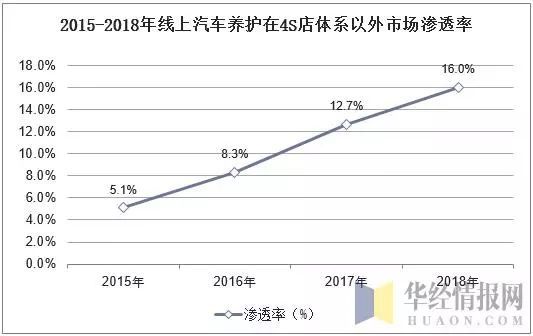 2018年线上汽车养护在4S店体系以外的市场渗透率已经达到16%,整体而言,在整个汽车后市场规模不断扩大,市场渗透率不断提高的背景下,中国线上汽车养护景气度不断上升。