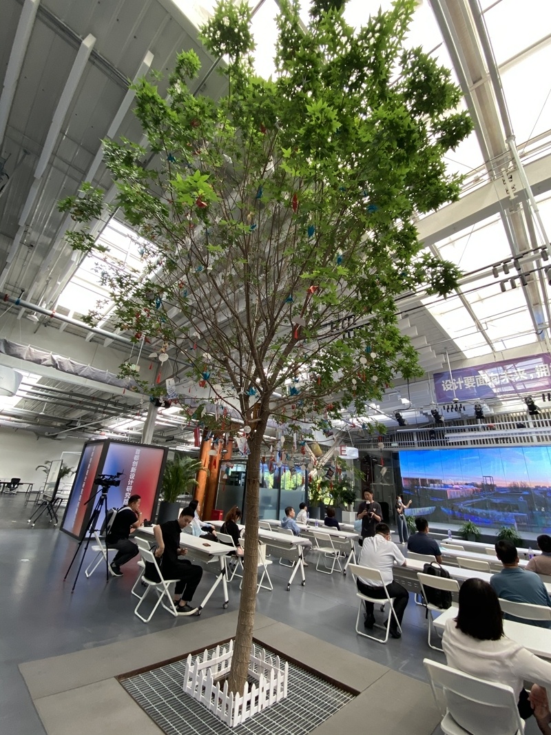 眼前的未来设计园区,和大家印象中的老厂房截然不同。这儿没有生锈的机器、布满灰尘的地面,呈现在眼前的是宽敞明亮的发布厅、简约现代的办公空间。除了元宝枫,这里还有不少花墙、草池,让人感觉像是置身于室内园林。