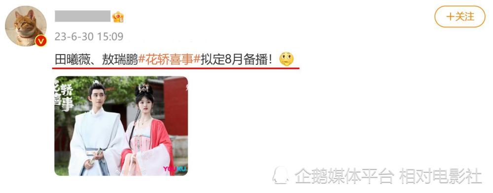 而且,近来,又一部古装翻拍新剧——新版《上错花轿嫁对郎》,即《花轿喜事》,也是被曝将有望于今年8月暑期档(暂定),就会正式迎来上线首播!