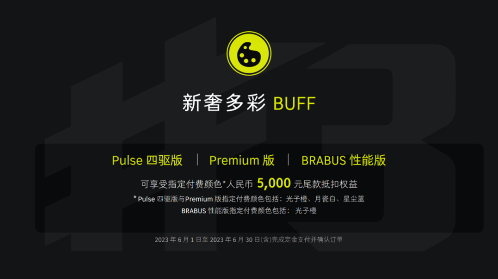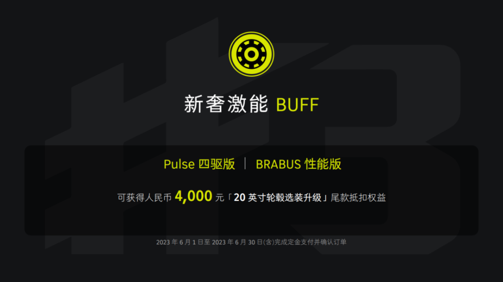 最后说说BRABUS性能版。相较于Pulse四驱版多了弹射起步模式,所以加速从4.3秒提升到了3.6秒,其他基本都是些“心情件”为主了。相较于加上限时免费密友超拉风套装的Pulse四驱版,多了超纤绒的座椅、超纤绒和皮质结合的方向盘、车内模拟声浪,还有独特的外观颜色可选:光子橙(5000元)和哑光灰(12000元),以及20 英寸太空灰星联五辐轮毂可选(9000元)。