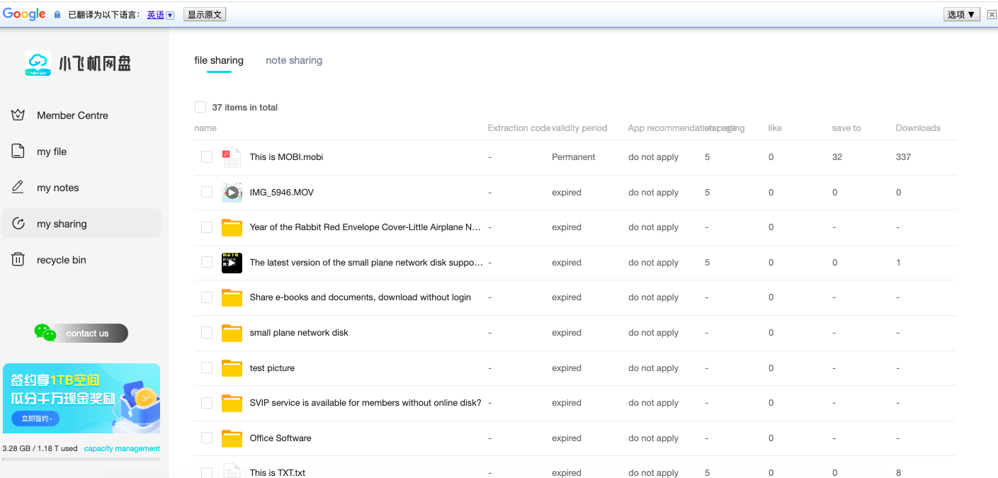 首先登录小飞机网盘账号,分享文件,然后在web端打开我的分享,即 图的内容