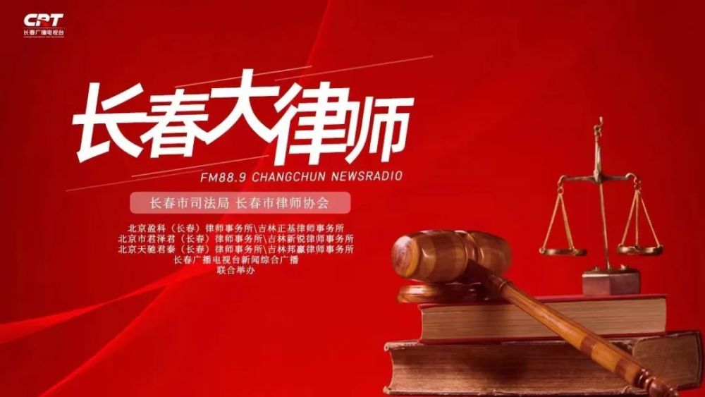 本节目由长春市司法局、长春市律师协会,北京盈科(长春)律师事务所、吉林正基律师事务所、北京市君泽君(长春)律师事务所、吉林新锐律师事务所、北京天驰君泰(长春)律师事务所、吉林邦赢律师事务所等11家律所及长春广播电视台新闻综合广播联合举办。