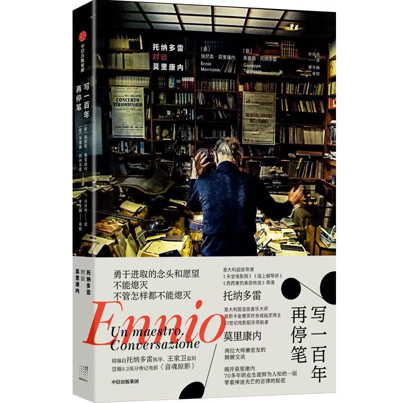 《写一百年再停笔:托纳多雷对谈莫里康内》既是一场导演与作曲家的高水准跨界对话,也是两位对艺术有着相近审美追求、彼此信任的事业伙伴耗时持久的心灵对谈。这两位艺术界翘楚就配乐创作、电影拍摄与导演合作轶事、恩师回忆、艺术作品的理解与表达、艺术学习的历程、童年经历与家庭、性格的自我剖析及生活日常等各方面进行了挖掘和探讨,为我们展示了一部部伟大作品是如何诞生的,作品背后的艺术人生以及大师经历的困惑与考验。