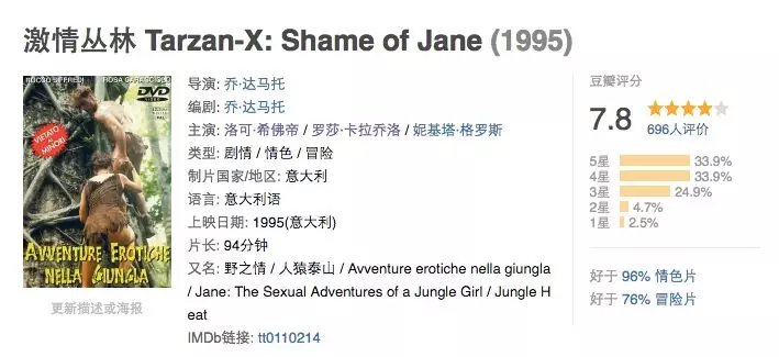 其实这部电影就是《人猿泰山》的成人版,奈何这对夫妻颜值身材都太出众才有此高分。