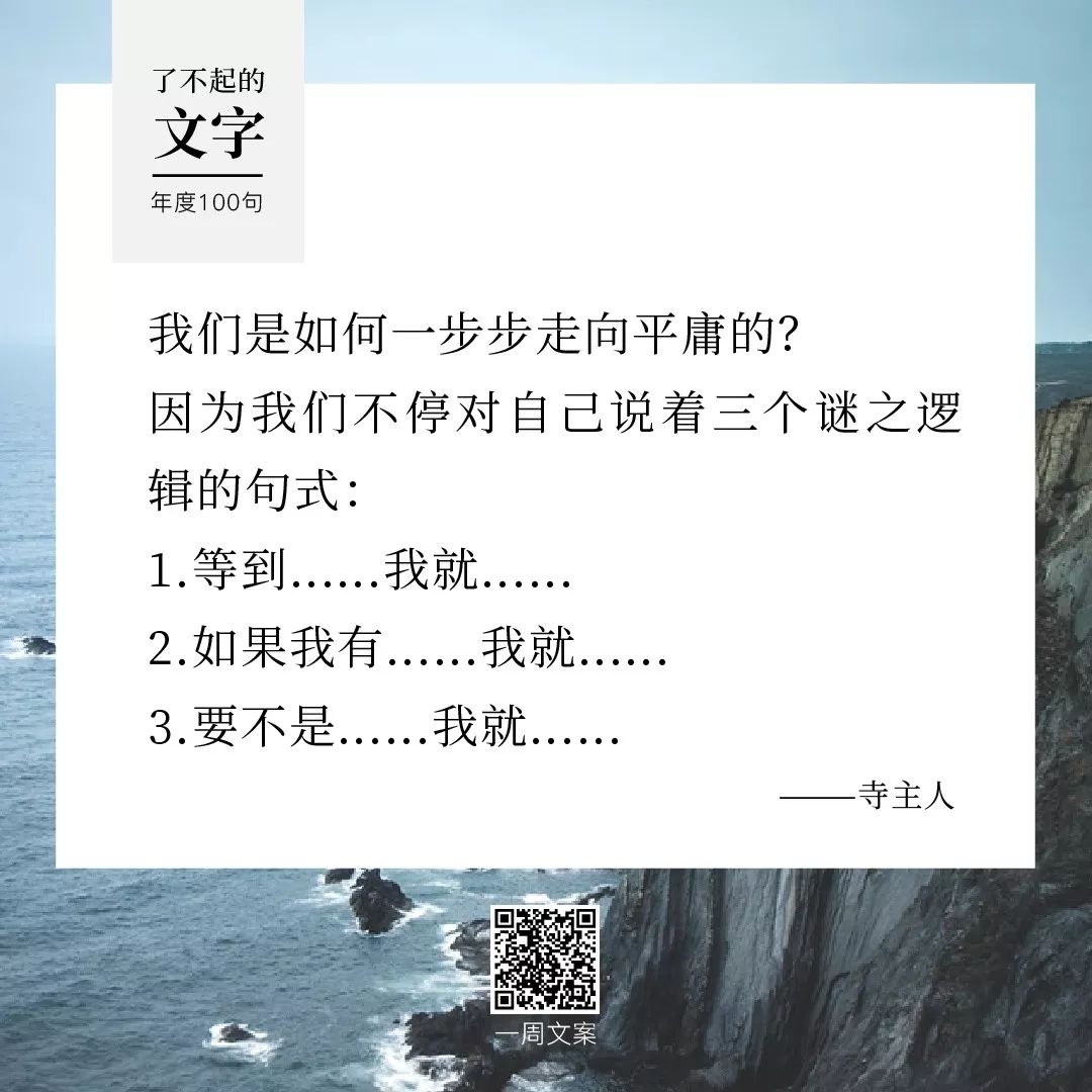我们是如何一步步走向平庸的?因为我们不停对自己说着三个谜之逻辑的句式:1、等到……我就……2、如果我有……我就……3、要不是……我就……