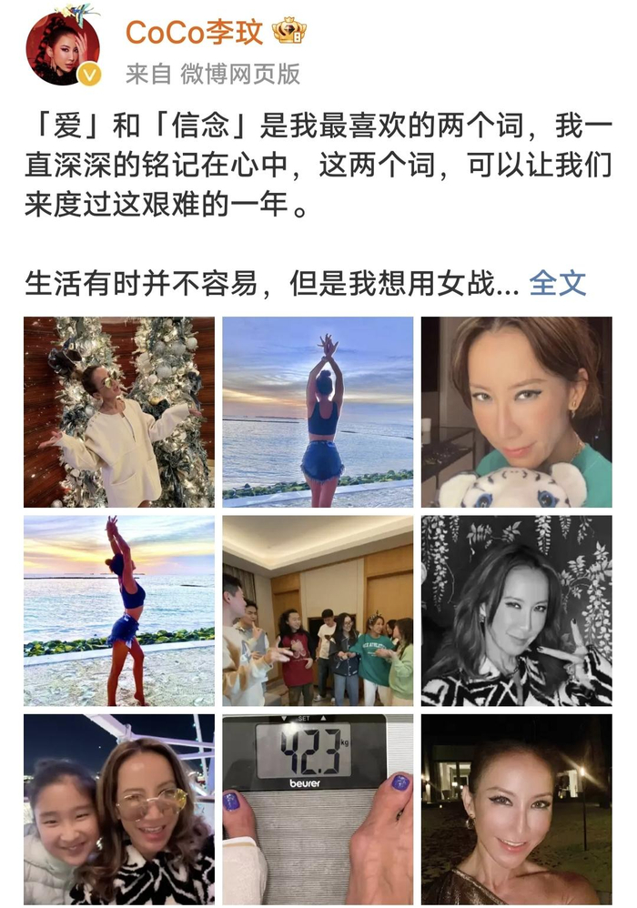 很难想象,李玟是在怎样的心境下写下这些看似“鸡汤”的文字。更多时候,她隐藏了自己脆弱的一面,大家看到的,是一个好像永远充满力量的女战士,乘风破浪,披荆斩棘。