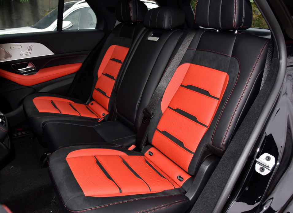 新款车型车内座椅采用真皮面料包裹,功能方面提供主副驾驶座椅电动调节,前排座椅通风,前排座椅电动记忆,老板键等。该车车辆座椅同样采用红黑撞色设计,看起来运动感较强,不过座椅内部填充物偏硬,乘坐体验并不舒适。