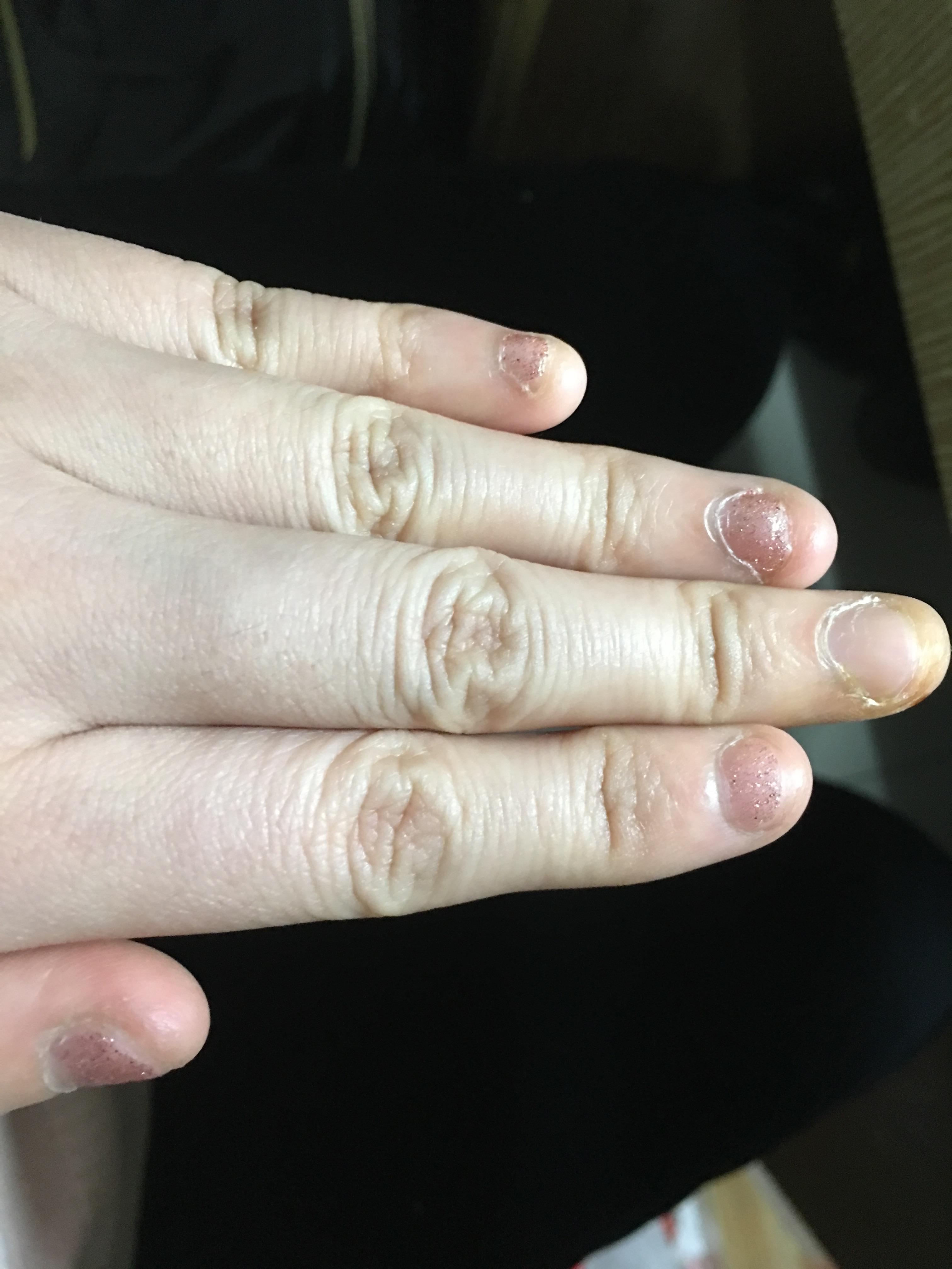 2.涂指甲油。涂了以后,我发现指甲表面变硬了,咬起来口感不及原来好,但还是想咬。