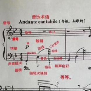 弹琴前的读谱并不是单纯的辨认音符,而是充分阅读所有的谱面信息,包括速度、强弱、调号、连断、时值、踏板等等。