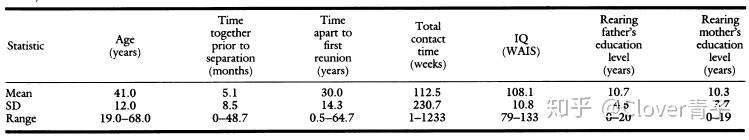 MZA双胞胎的均值,标准差(SD)和年龄范围,接触程度,智商和父母教育程度的范围。数据基于招募的前56组MZA。