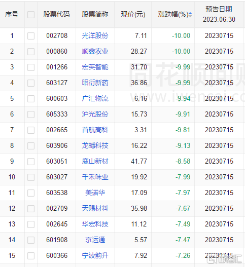 今日,A股的业绩主线仍非常明显,多只上半年业绩预告较差个股集体下跌。截至发稿,光焰股份、顺鑫农业、宏英智能、昭衍新药、光辉物流、沪光股份跌停,首航高科、龙蟠科技跌超9%。