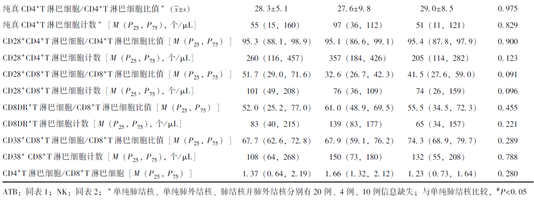 2.4 不同受累部位病原学确诊ATB结核患者外周血淋巴细胞亚群差异