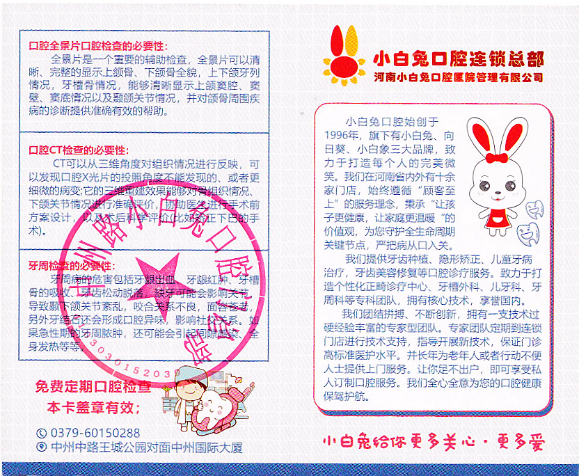 添加小白兔口腔微信,领取超级大礼包!价值1320元的小白兔VIP家庭套餐!绝对七项全免费哦!不让你掏一分钱!