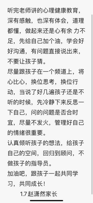 家长朋友们,认真听课,详细记录自己的所思所感,将活动推向高潮。