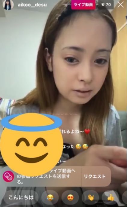 图为爱子ins直播的视频截图,图中的爱子似乎没有化妆