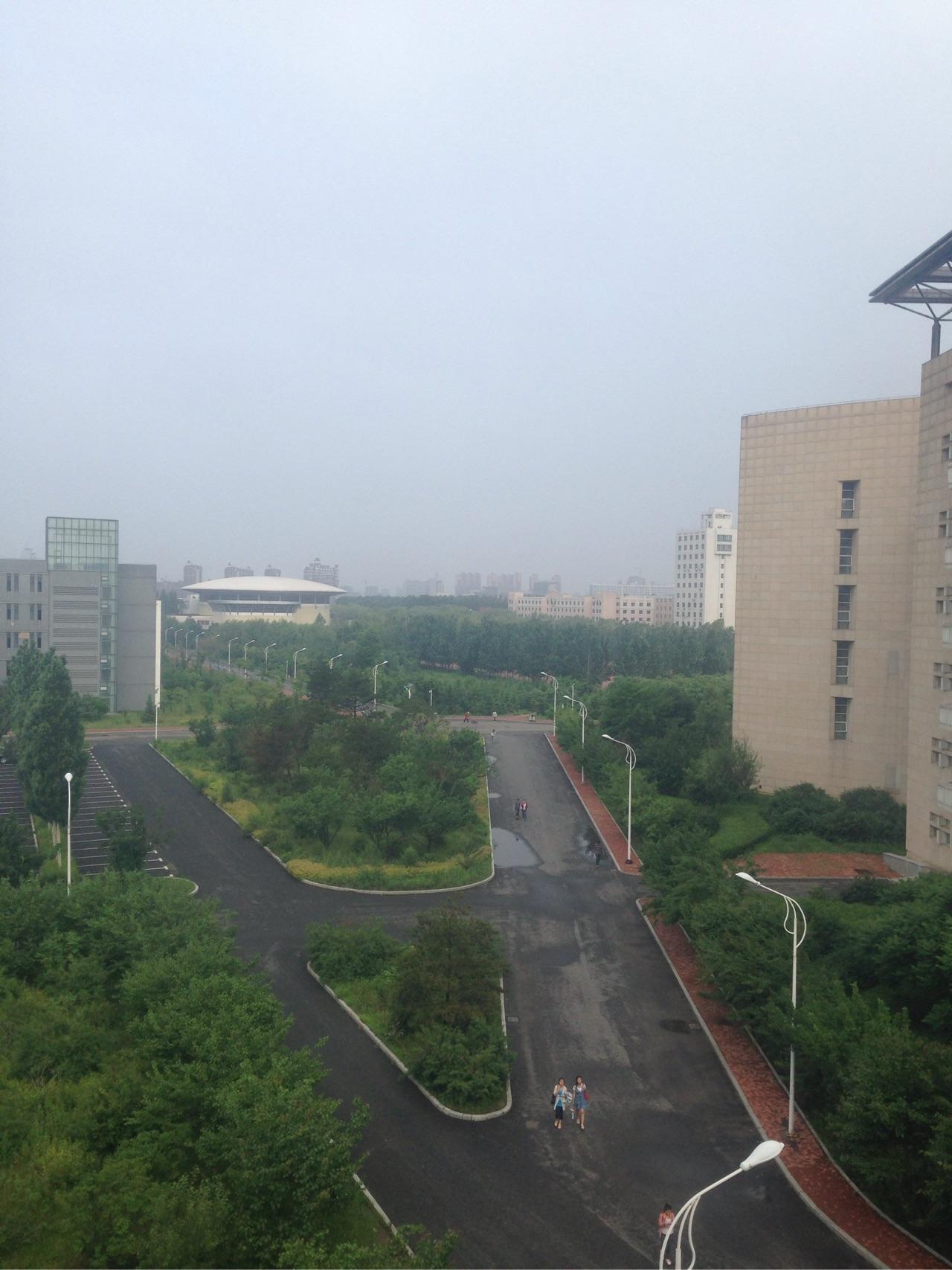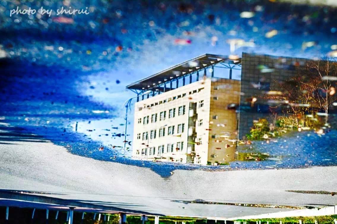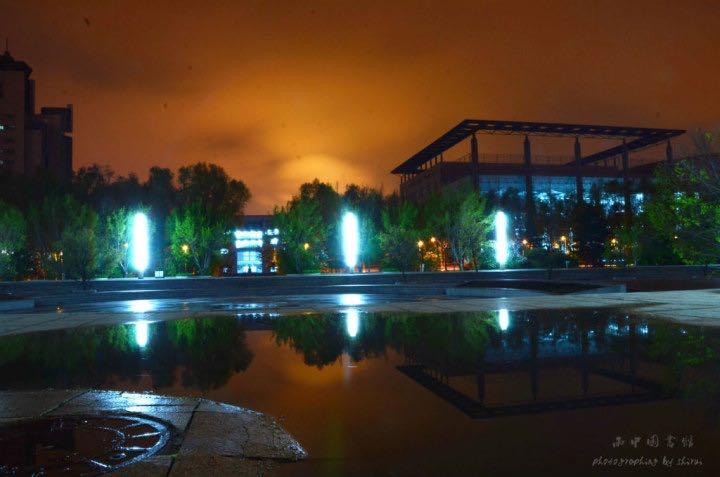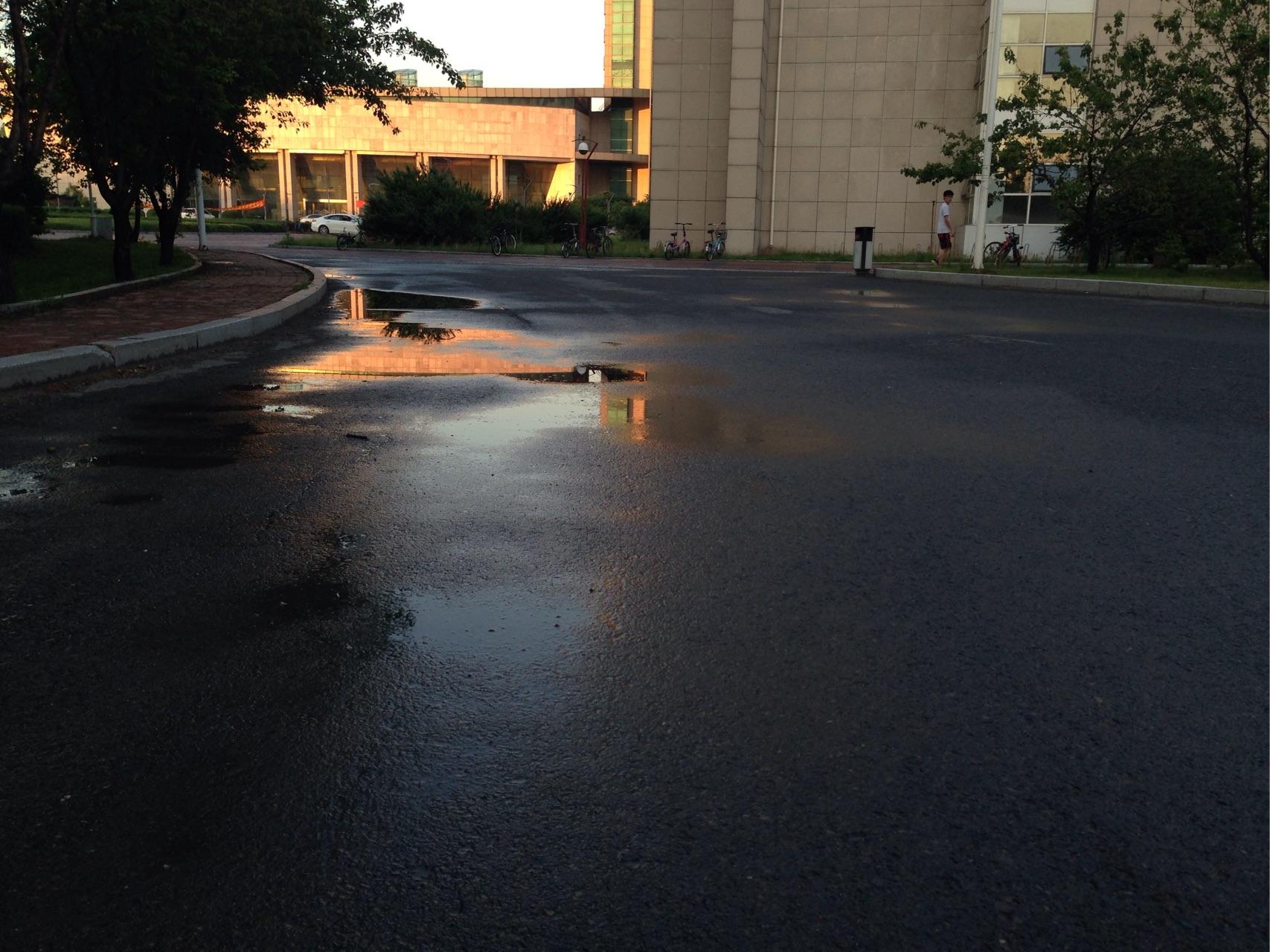 想来想去,徘徊踯躅良久,只拍了一张秋雨之后的图书馆(图书馆后面三教一侧)